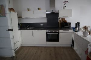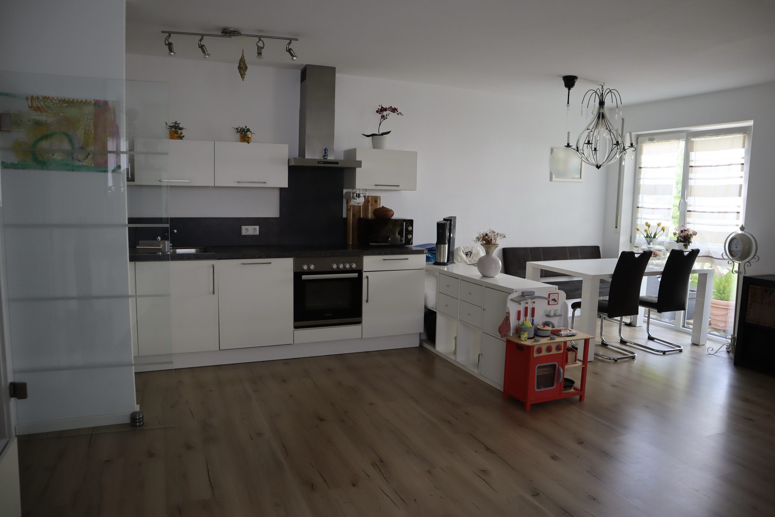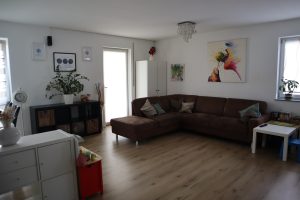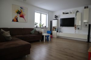 Die Wohnung ist hochwertig ausgestattet und begeistert mit klaren Linien und einem modernen, offenen Schnitt. Große Fensterflächen sorgen für ein helles, freundliches Wohngefühl mit direktem Blick in den Garten. Der Boden in Holzoptik schafft eine warme Wohnatmosphäre, während die in Weiß gehaltenen Wände und Decken eine zeitlose Eleganz vermitteln.