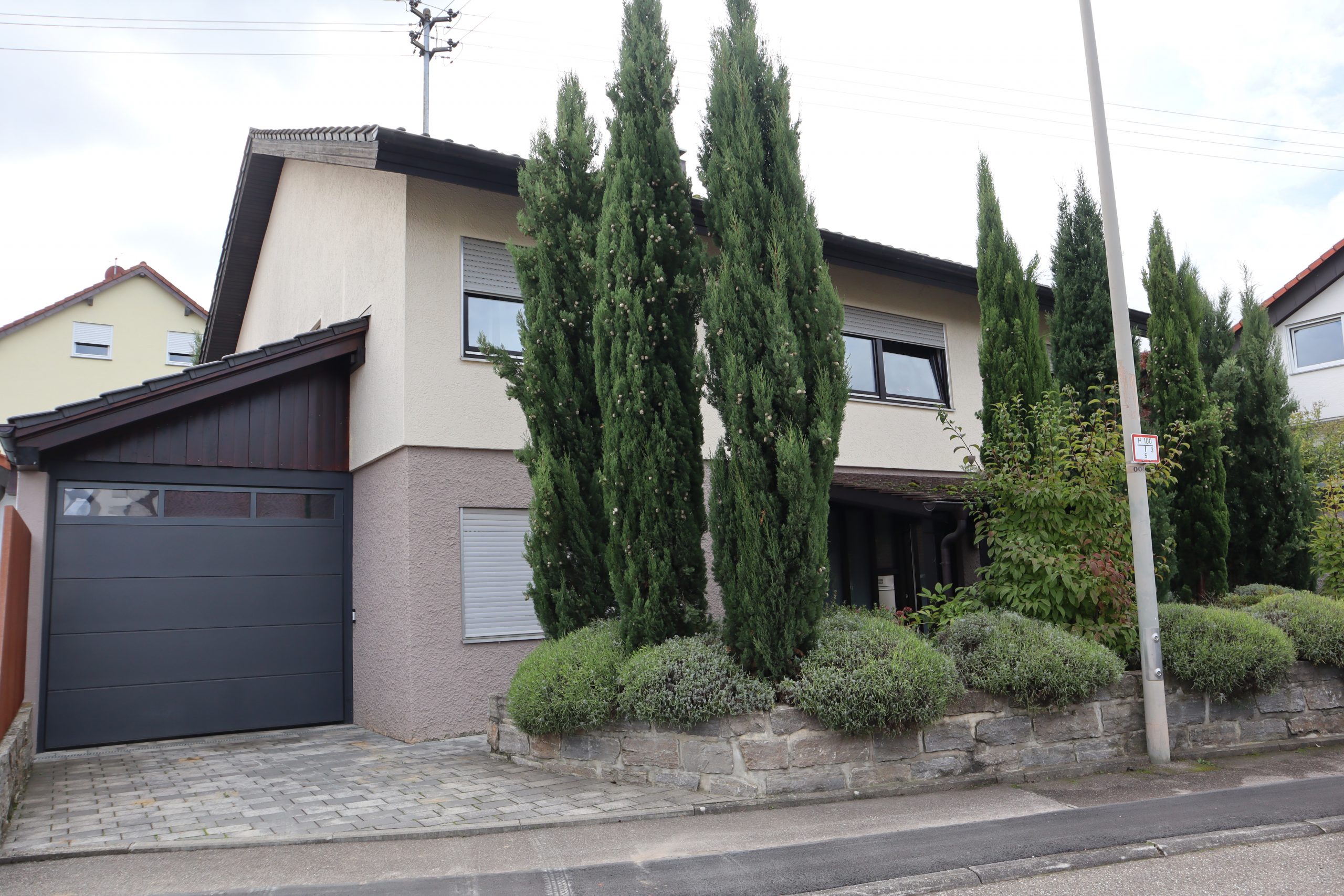 Dieses charmante Einfamilienhaus mit Einliegerwohnung präsentiert sich auf einem großzügigen Grundstück von ca. 604 m² in ruhiger Wohnlage. Das im Jahr 1982 erbaute Haus überzeugt mit einer durchdachten Raumaufteilung, einer Wohnfläche von rund 200 m² sowie einem vollständig ausgebauten Unter- und Dachgeschoss. Zusätzlich verfügt die Immobilie über eine große Doppelgarage und eine weitere Einzelgarage, welche insgesamt drei Garagenstellplätze zur Verfügung stellen. Das Objekt bietet viel Platz für Familien, die Wohnen, Arbeiten und Gäste elegant miteinander verbinden möchten.