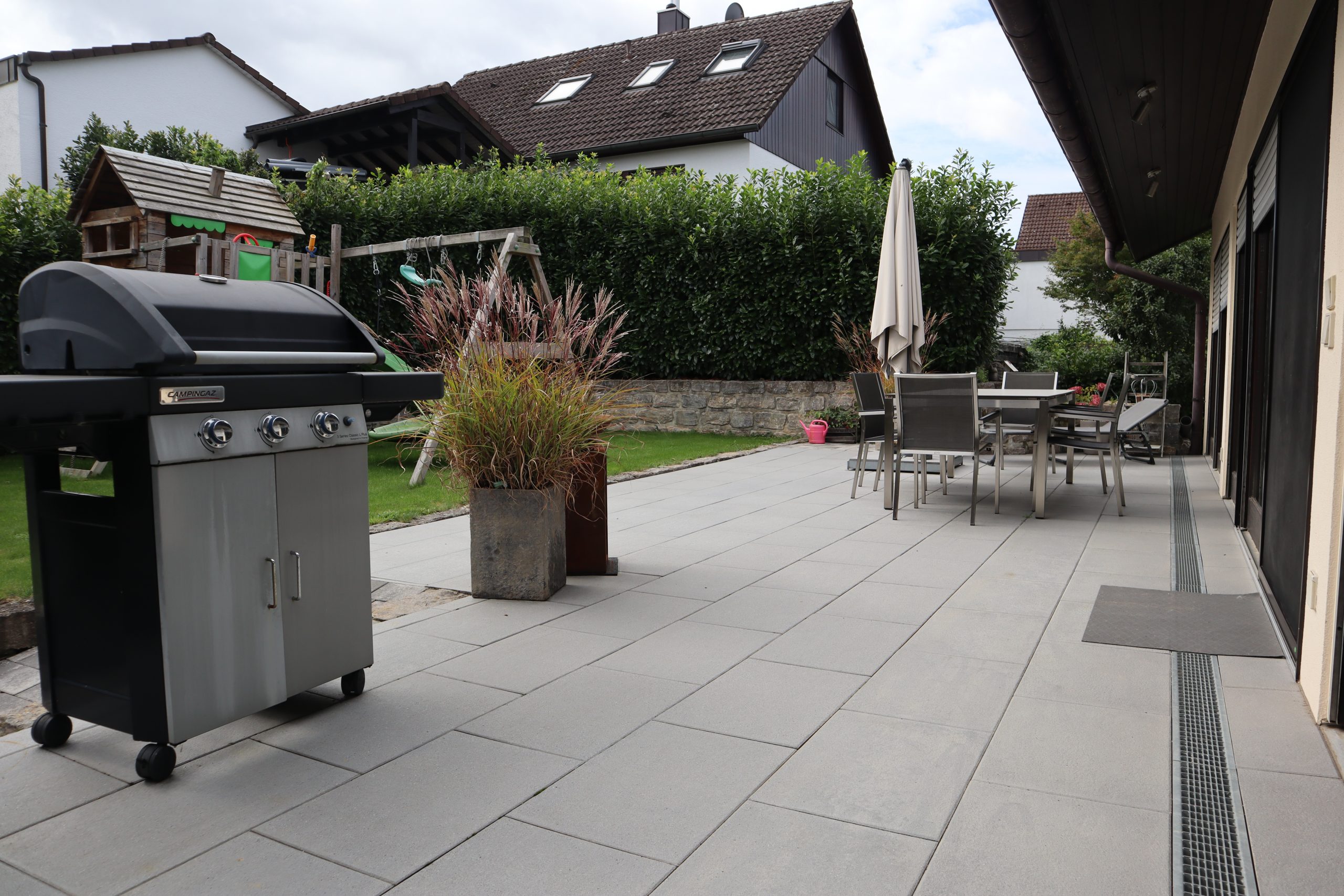- große Terrasse mit direktem Zugang zum Garten