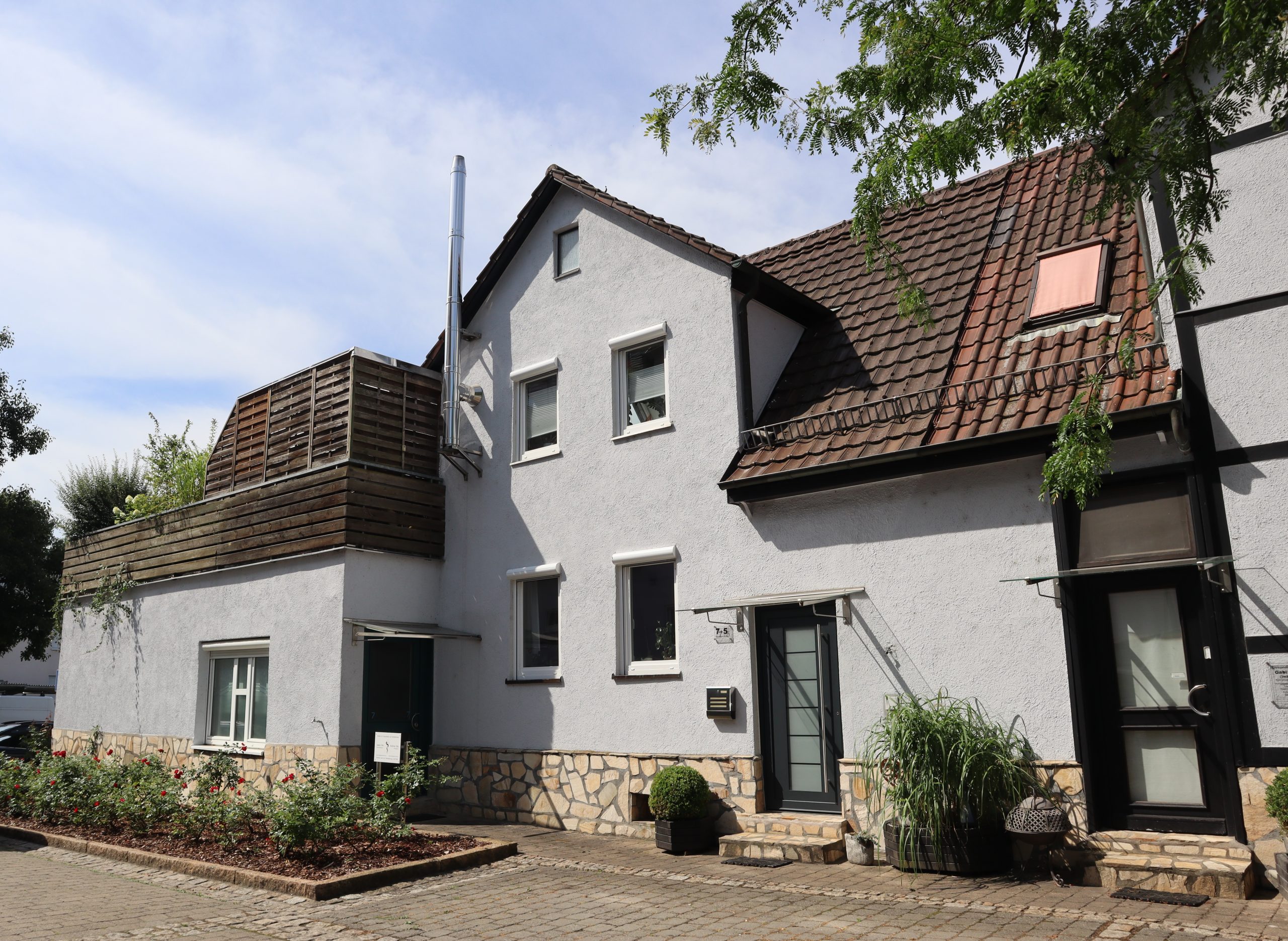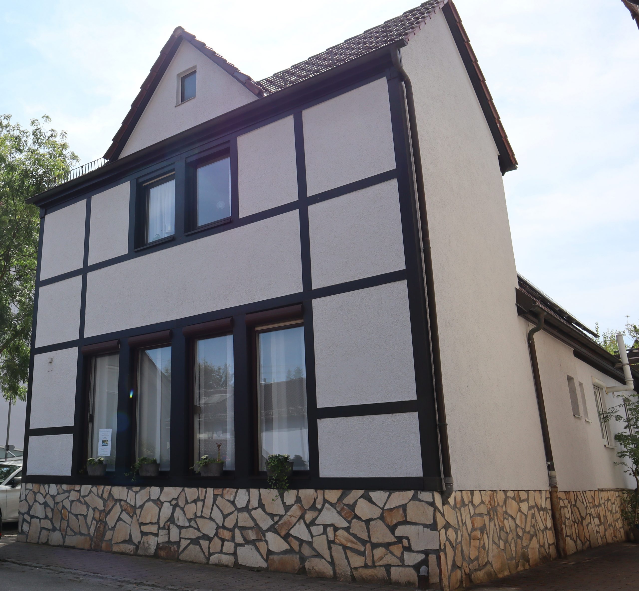 Dieses charmante Anwesen verbindet auf gelungene Weise historischen Charakter mit modernem Wohnkomfort. Das Ensemble aus stilvoll modernisiertem Hauptgebäude und einem harmonisch integrierten Altbau in traditioneller Fachwerkbauweise besticht durch seine charaktervolle Fassadengestaltung. Die Kombination aus klaren Linien, klassischem Fachwerk und einem Natursteinsockel verleiht dem Haus eine warme, einladende Ausstrahlung und unterstreicht den gelungenen Brückenschlag zwischen Tradition und zeitgemäßem Wohnen.
