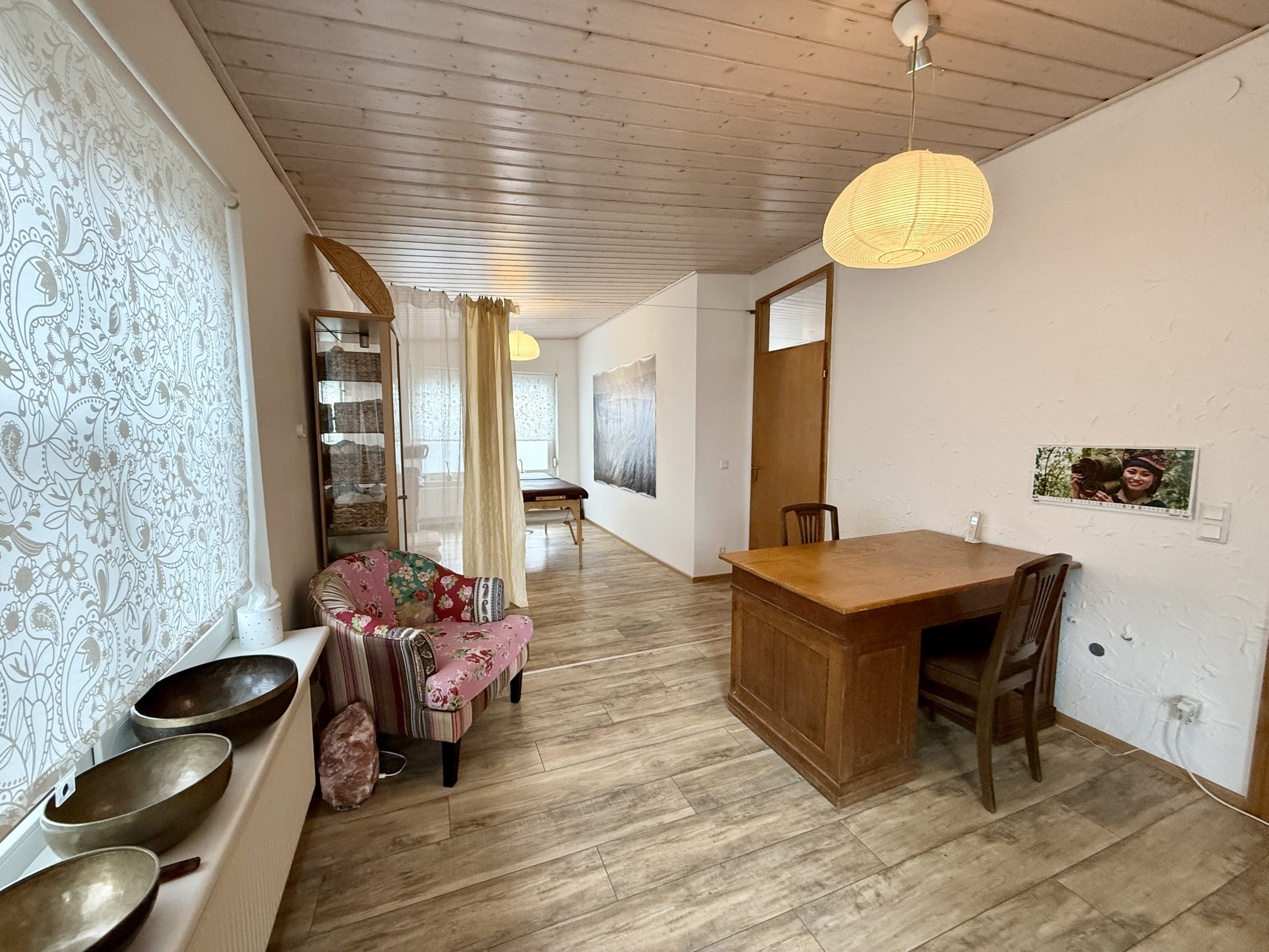 Im Anbau unterhalb der Dachterrasse ist derzeit eine funktionale Zweizimmerpraxis untergebracht, die alternativ auch als Wohnraum genutzt werden kann. Mit geringem Aufwand lässt sich dieser Bereich in eine vollwertige Zwei-Zimmer-Wohnung umgestalten, mit Badezimmer und Küche – ideal beispielsweise für die Vermietung, als Einliegerwohnung oder zur Nutzung durch Familienmitglieder. Je nach Bedarf und Nutzungskonzept eröffnet sich hier eine hohe Flexibilität in der Raumaufteilung und Gestaltung.Ausstattung: